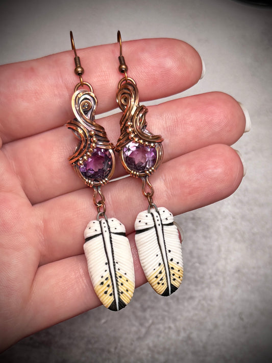 Sold out.Amethyst and Feather earrings